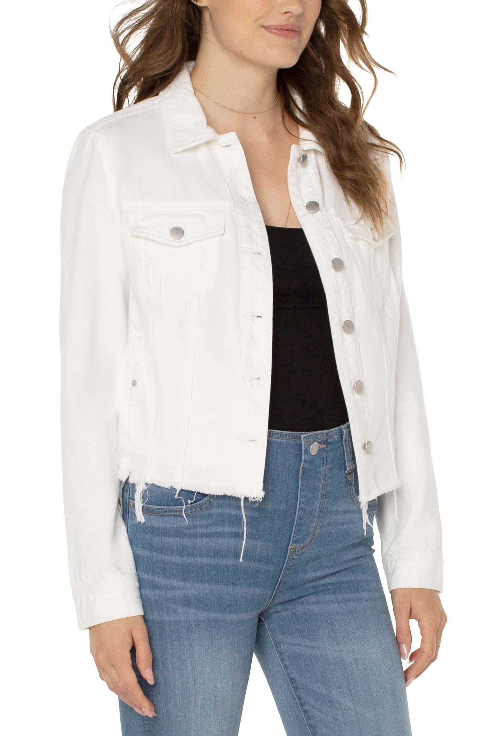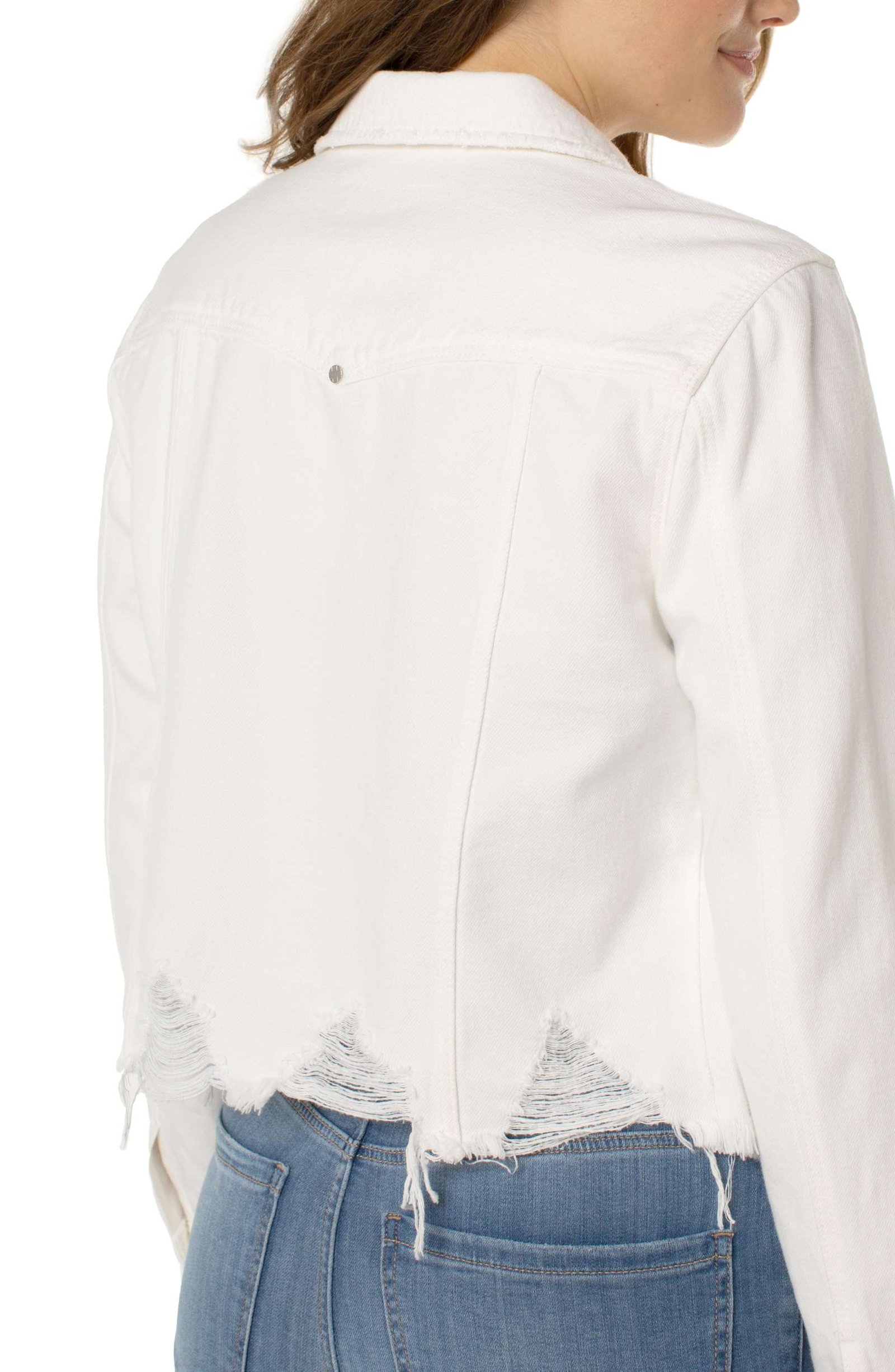 Liverpool Denim Jacket with Shredded Hem (Prairie White)