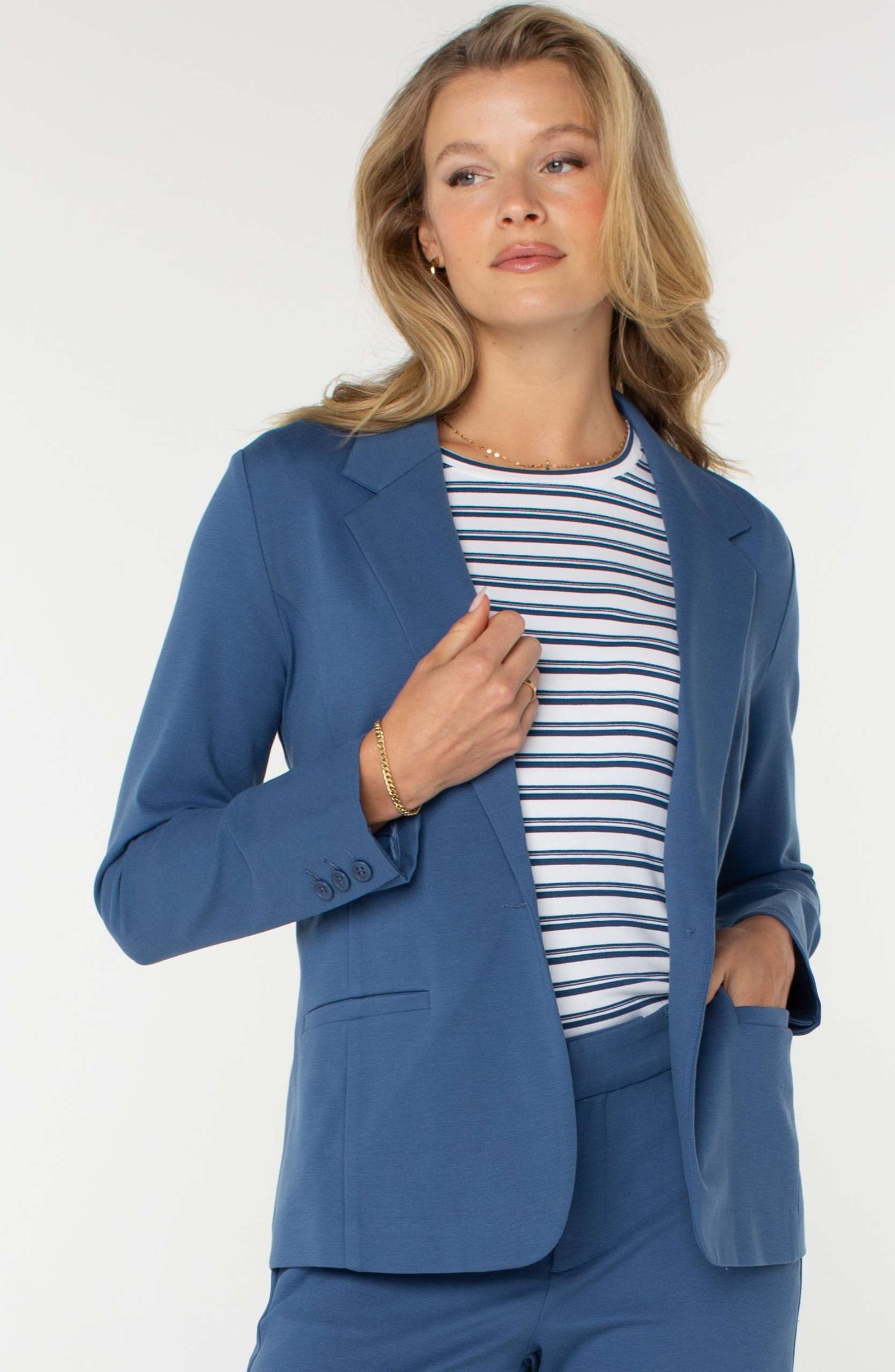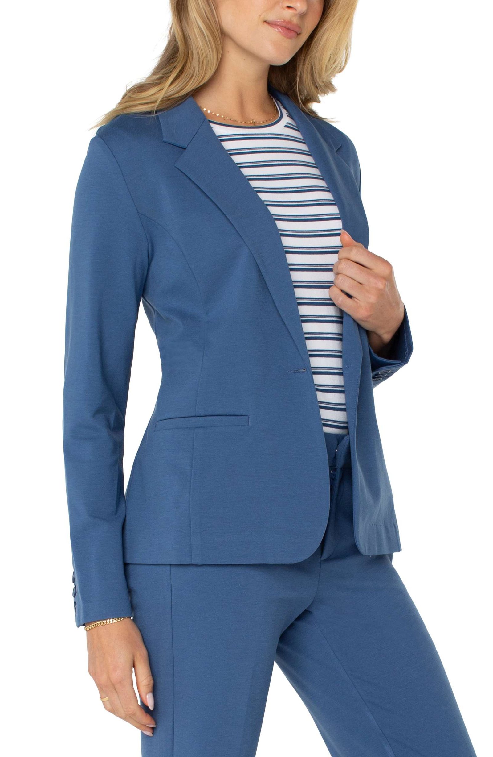 Introducing the fitted blazer – the ultimate statement piece for any occasion. With its sleek design and sophisticated style, this blazer is perfect for both day and night. The lightweight ponte material adds an extra level of comfort and versatility to your wardrobe.