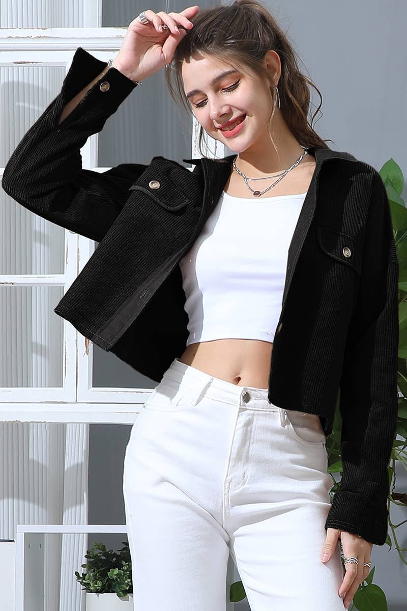 Keep it chic and stylish with this slim fit jacket, crafted with 100% cotton for a comfortable and breathable wear. Women’s basics just got a whole lot more fun! Let your fashionably frugal side shine in this corduroy jacket! Fun and function meet in this wardrobe essential.